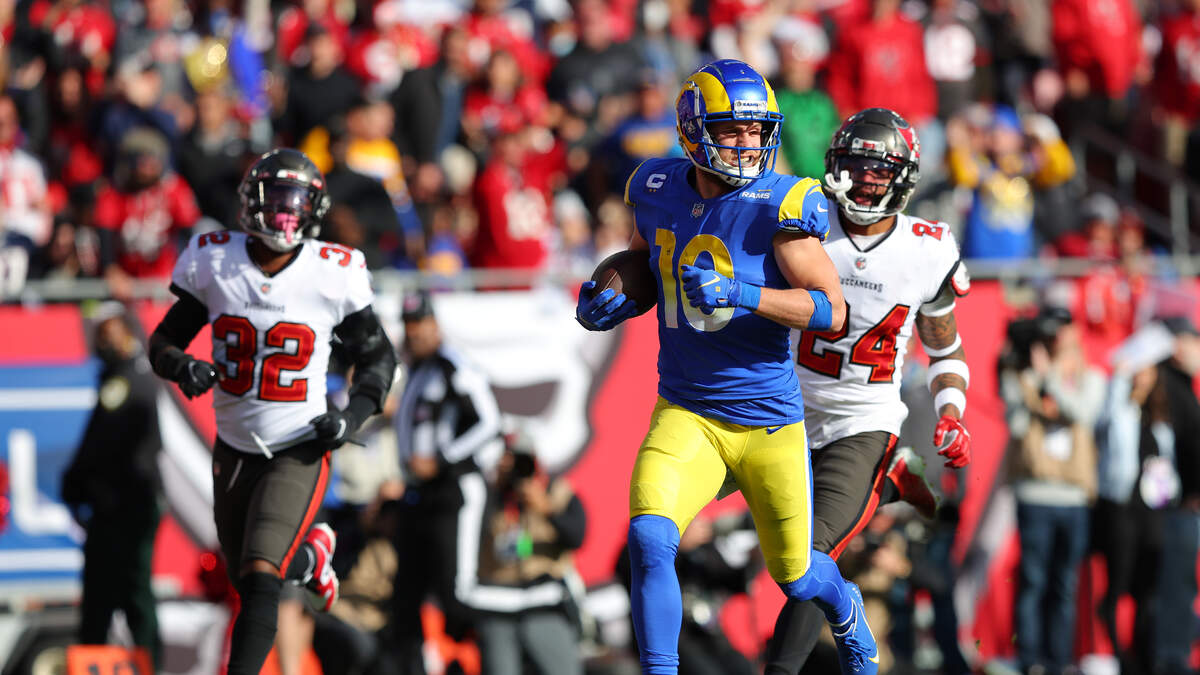 But the Rams continued their onslaught after kickoff specialist Bradley Pinion placed the ensuing kickoff out of bounds. After a sack of Stafford by Vita Vea made it 3rd and 20, Kupp was wide open down the right sideline and raced past the Bucs' defense for a 70-yard touchdown, making the score 17-3.