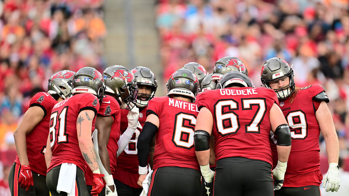 Baker Mayfield threw for five touchdown passes - two to Mike Evans, two to Jalen McMillan and one to Payne Durham. Bucky Irving ran for 113 yards and grabbed 77 yards in the air for 190 yards from scrimmage - Mike Evans added 97 yards receiving.