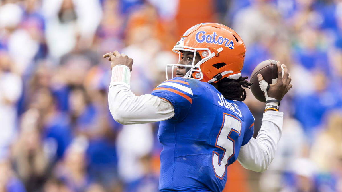 Emory Jones had 550 yards of total offense at quarterback for the Gators. He went 28-for-34 with 464 yards passing and six touchdowns, while rushing for another 86 yards and a touchdown on the ground.