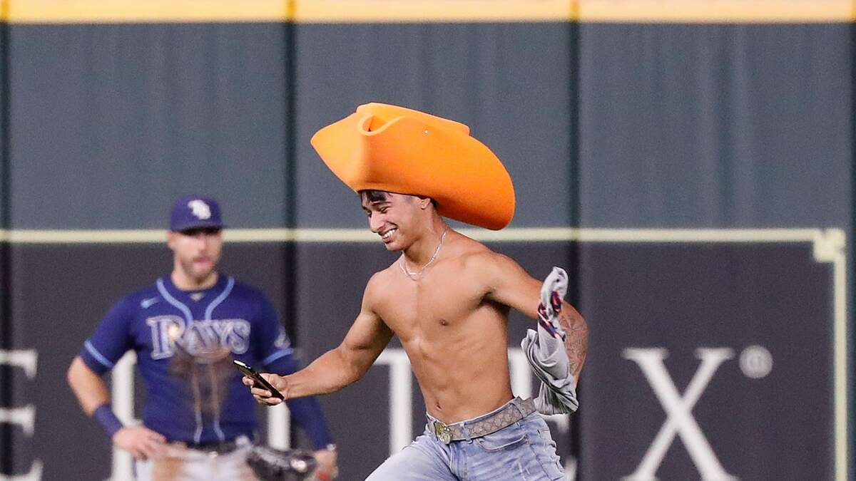 Two fans jumped on the field of play during the Rays vs Astros game in Houston, and one sprinter was wearing a GIANT ORANGE COWBOY HAT before security corralled him haha check out the footage here! Same night Tampa Bay secured the top spot in the AL Playoff Bracket too...